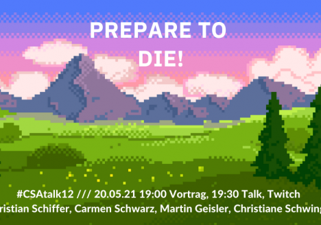 Was? Im Rahmen des Computerspiel Festivals im Pathos Transport Theater sprechen wir über Computerspiele und (Bildschirm-)Tod. In diesem Sinne: Prepare to Die! 19.00 wird der Talk eingeleitet von einem Vortrag von Christian…