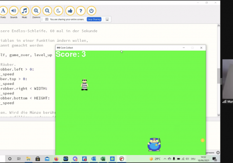 Gamedesign mit Python – Spiele programmieren mit Mu im Juli 2021